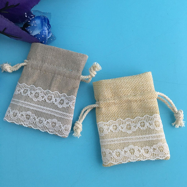 Gift Packing Jute Drawstring Bag Wear Resistant With Lace Lightweight Images |